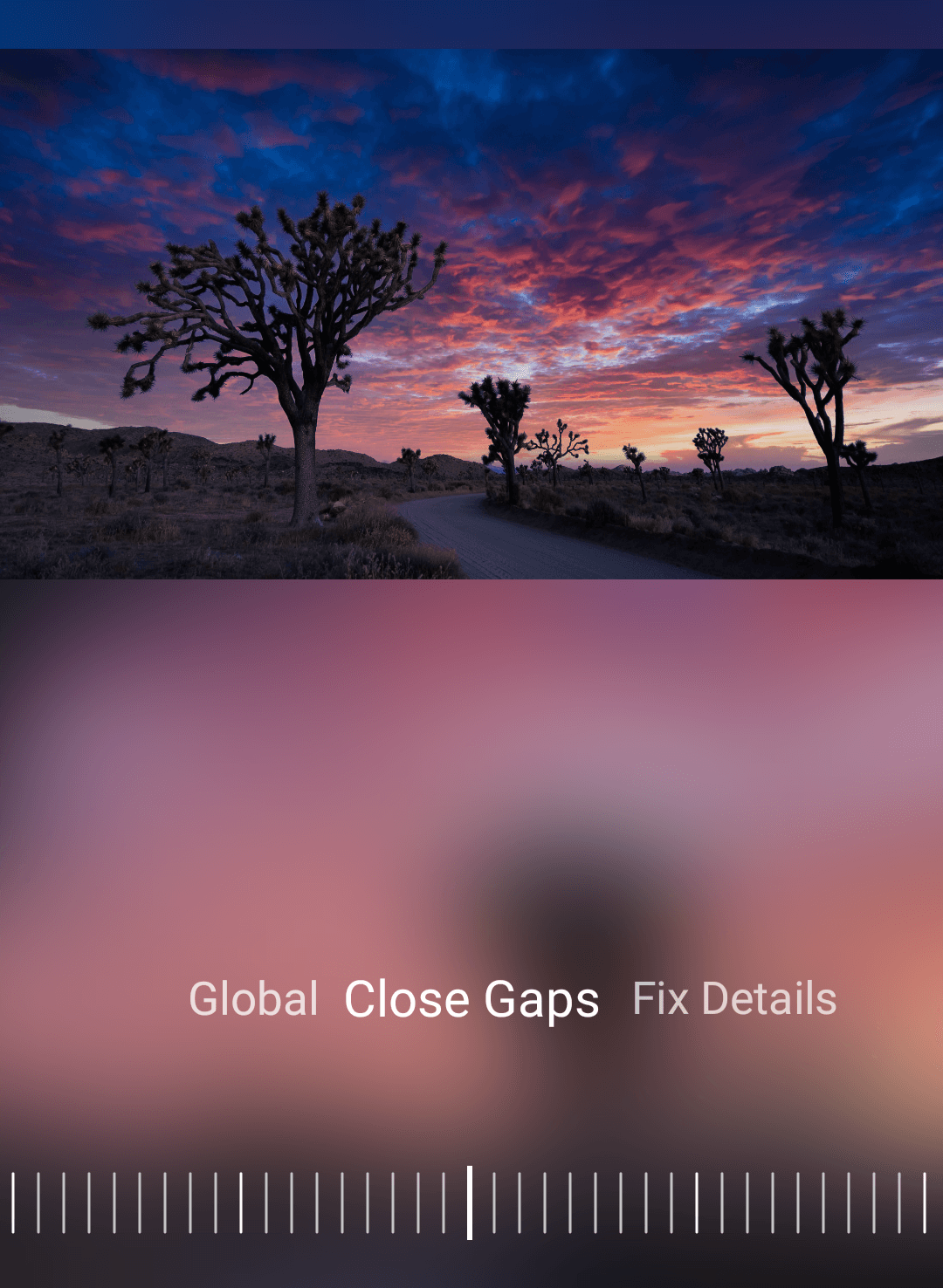 Of course, imgmi doesn’t get it perfect every single time. Thankfully, when the sky/horizon edges are done wrong, or when the transition just doesn’t look right, Skylum has included three main tools for fine-tuning your sky replacement: Adjustments, Orientation, and Mask. The Adjustments section allows you to make subtle tweaks to the lighting and blending of the earth and sky images, and of course, the Orientation tool lets you move the sky around. Within the Mask adjustment section, there are these sliders: Global, Close Gaps, and Fix Details.